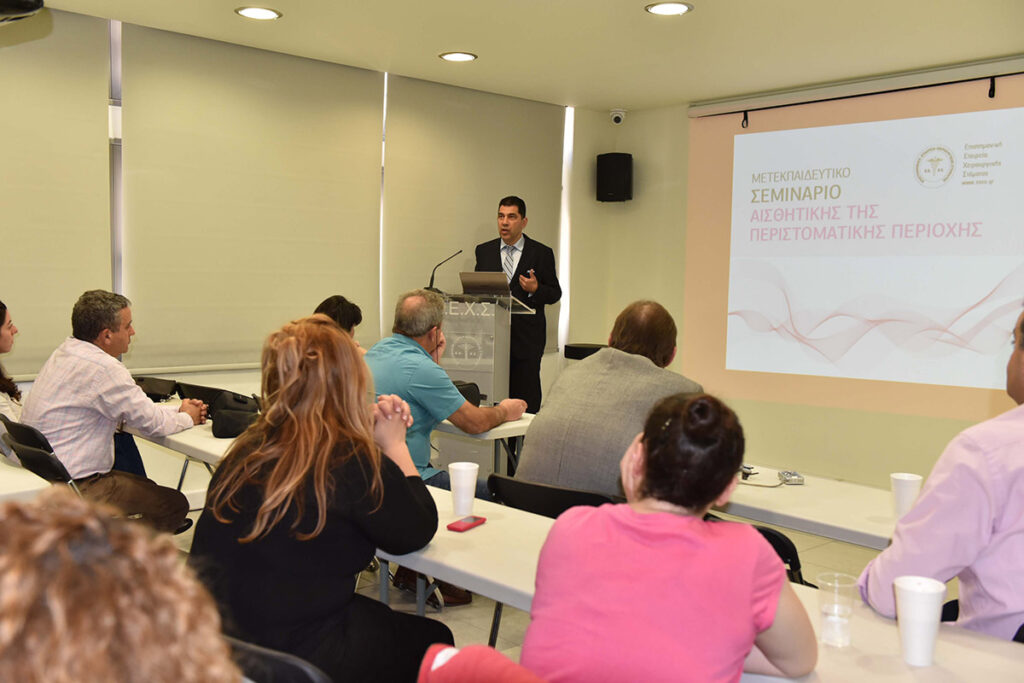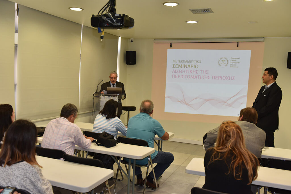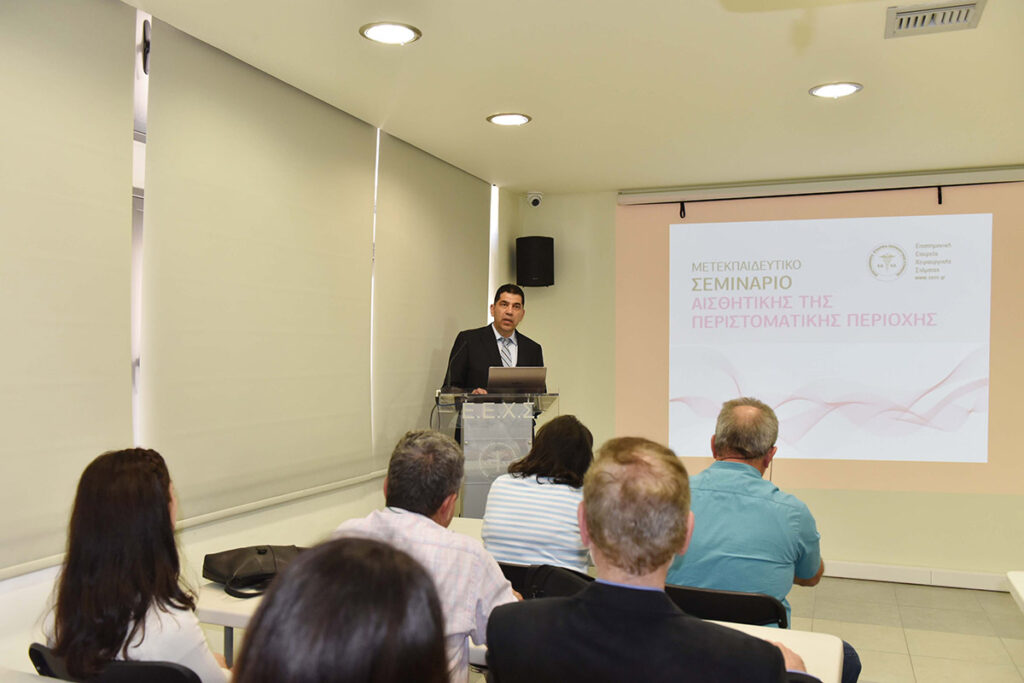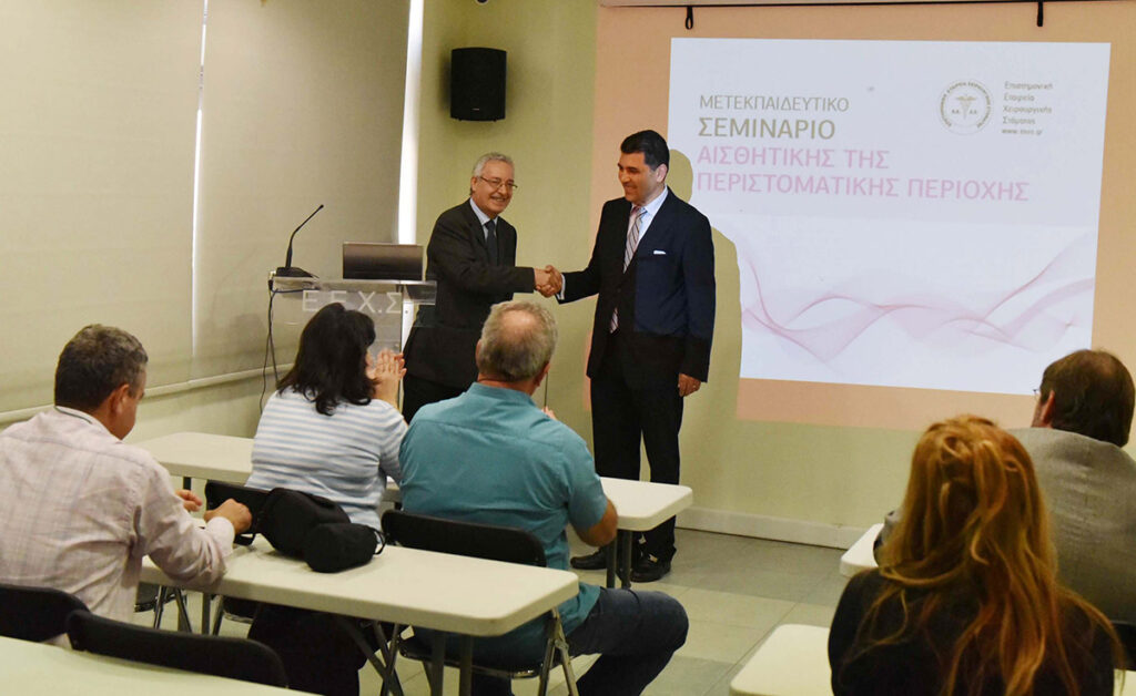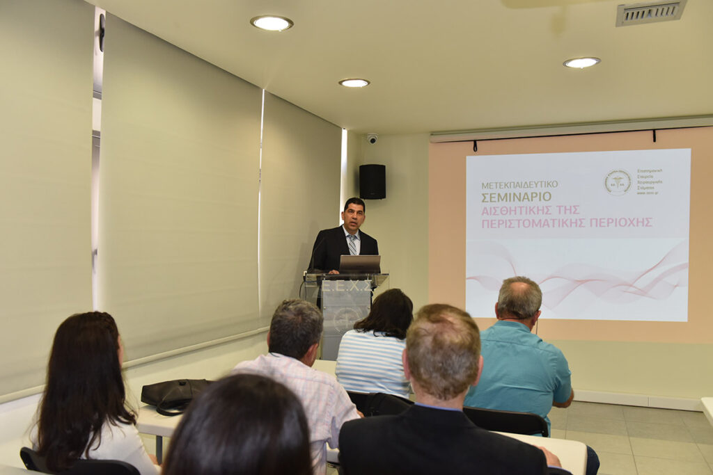 Η Ε.Ε.Χ.Σ. με ιδιαίτερη χαρά ανακοινώνει την πραγματοποίηση σειράς μετεκπαιδευτικών μαθημάτων αισθητικής της περιστοματικής περιοχής. Τα μαθήματα θα διεξαχθούν την περίοδο Απρίλιος 2016 – Μάιος 2016 και θα περιλαμβάνουν 3 σαββατοκύριακα εκπαίδευσης. Οι συμμετέχοντες θα είναι ιατροί όλων των ειδικοτήτων και οδοντίατροι. Η εκπαίδευσή τους θα περιλαμβάνει θεωρητική και πρακτική κατάρτιση. Οι εκπαιδευόμενοι θα ασκηθούν σε επεμβάσεις έγχυσης υαλουρονικού οξέος στην περιστοματική περιοχή.