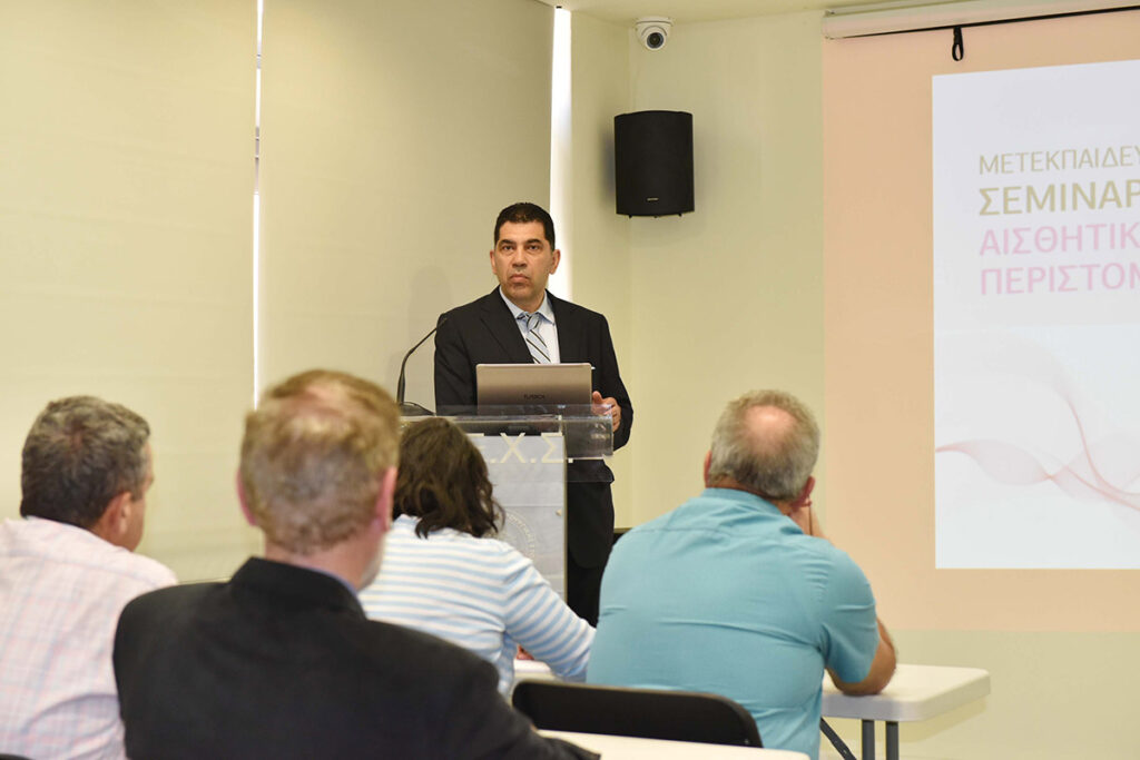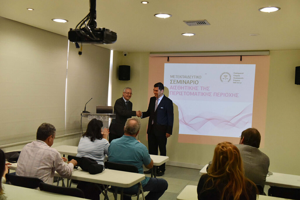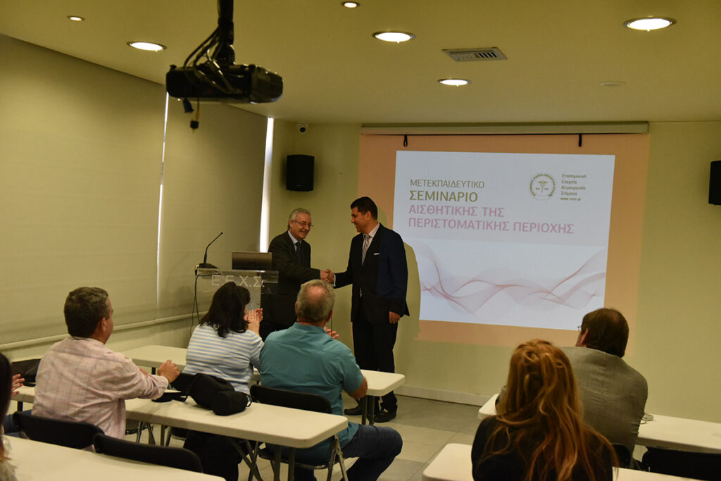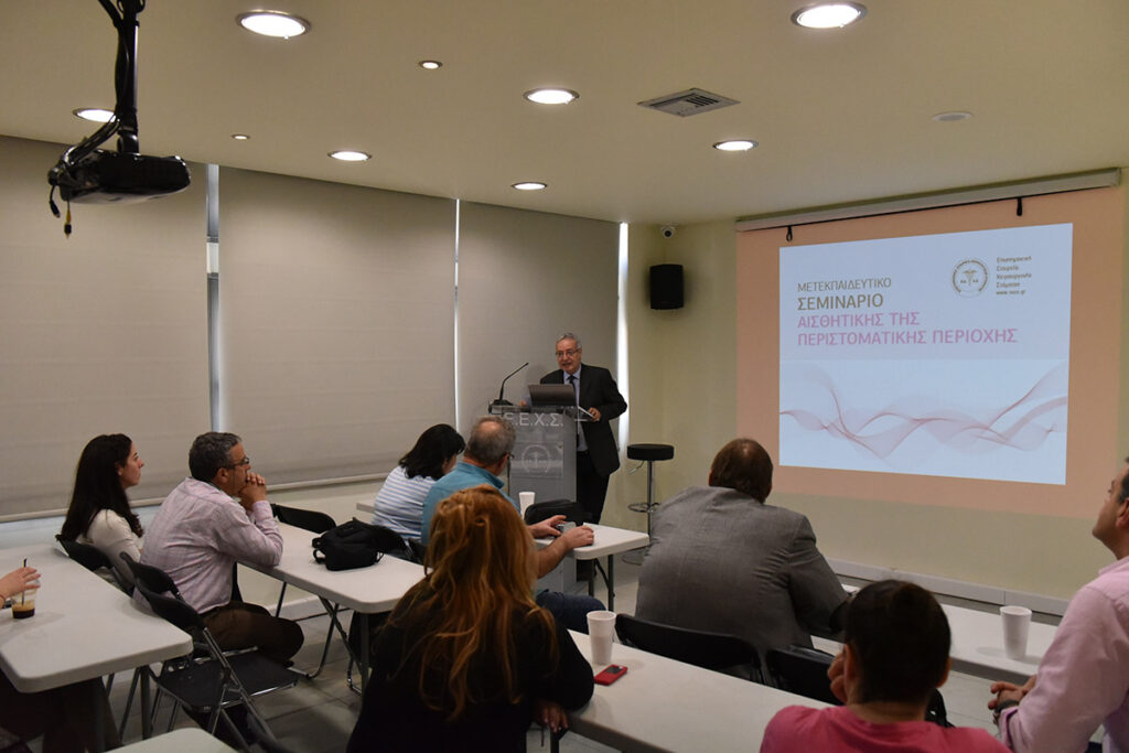 Η Ε.Ε.Χ.Σ. με ιδιαίτερη χαρά ανακοινώνει την πραγματοποίηση σειράς μετεκπαιδευτικών μαθημάτων αισθητικής της περιστοματικής περιοχής. Τα μαθήματα θα διεξαχθούν την περίοδο Απρίλιος 2016 – Μάιος 2016 και θα περιλαμβάνουν 3 σαββατοκύριακα εκπαίδευσης. Οι συμμετέχοντες θα είναι ιατροί όλων των ειδικοτήτων και οδοντίατροι. Η εκπαίδευσή τους θα περιλαμβάνει θεωρητική και πρακτική κατάρτιση. Οι εκπαιδευόμενοι θα ασκηθούν σε επεμβάσεις έγχυσης υαλουρονικού οξέος στην περιστοματική περιοχή.