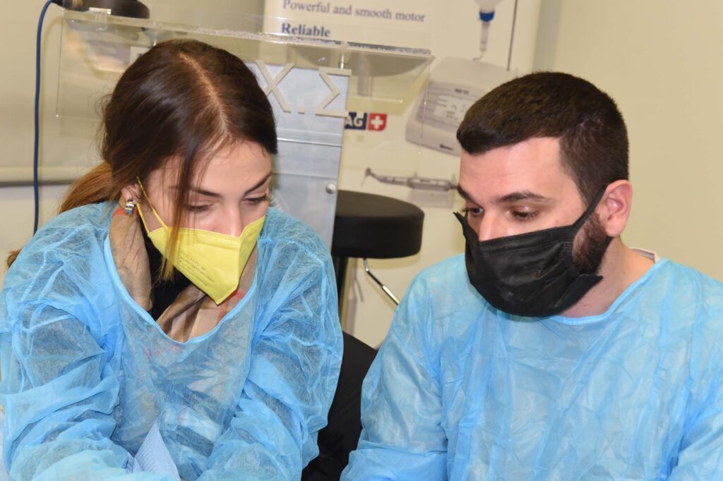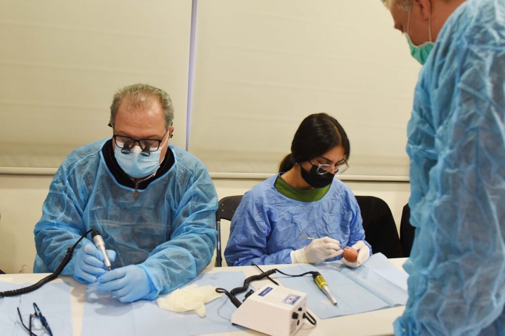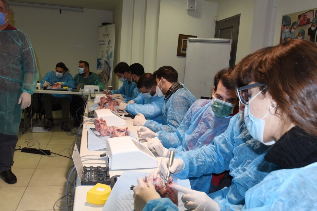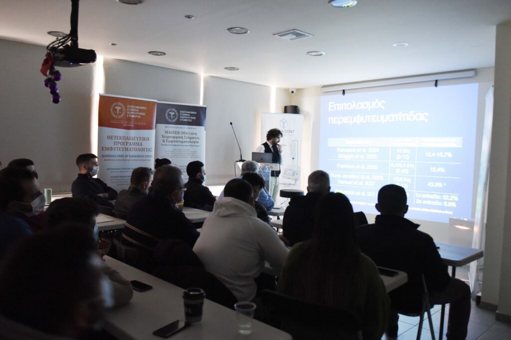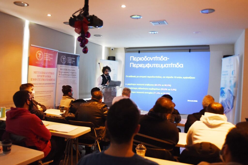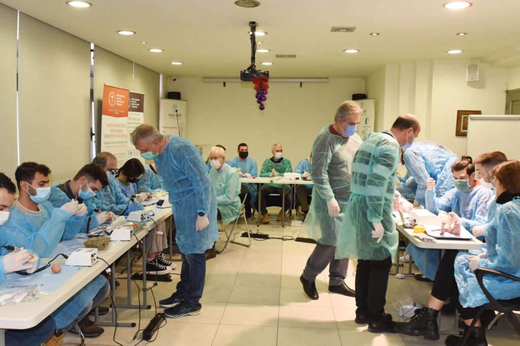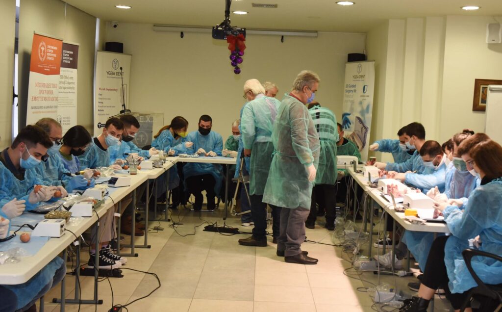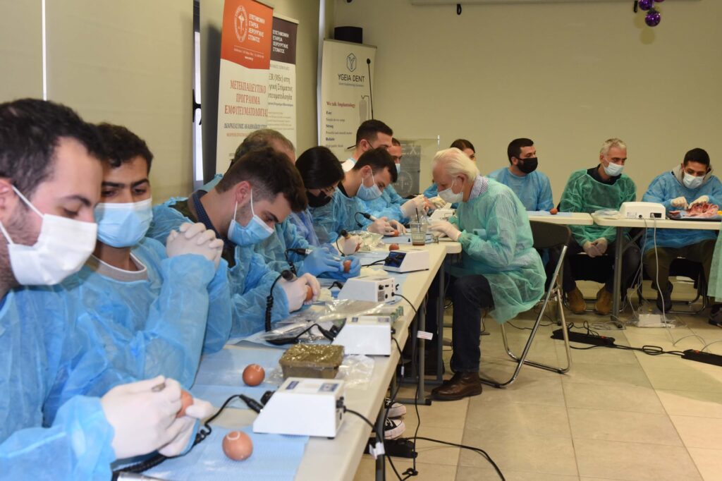 Αυτό το σαββατοκύριακο σημαντικοί επιστήμονες τίμησαν το Πρόγραμμά μας με την παρουσία τους, προσφέροντας στους συμμετέχοντες για άλλη μια χρονιά τις πολύτιμες γνώσεις και την εμπειρία τους. Aπό το Λονδίνο ήρθε κοντά μας ο ειδικός Περιοδοντολόγος Dr. Dimitrios Fragkiskos (Specialist in Periodontics and Implant Surgeon, MClin Dent in Perio, UCL), ο οποίος παρουσίασε τα νεώτερα δεδομένα για την συντηρητική και χειρουργική θεραπευτική αντιμετώπιση της περιεμφυτευματίτιδας καθώς και την ανάπλαση οστικών ελλειμμάτων με μοσχεύματα. Επίσης, ο Γναθοχειρουργός κ. Μανταλενάκης Κωνσταντίνος έκανε κλινική επίδειξη παρασκευής αυτομοσχεύματος μετά από αιμοληψία και φυγοκέντρηση του αίματος. Επιπλέον, οι εκπαιδευόμενοι είχαν την ευκαιρία να ασκηθούν πρακτικά στην τοποθέτηση εμφυτευμάτων σε γνάθους χοίρων. Η Ε.Ε.Χ.Σ. ευχαριστεί θερμά τους προσκεκλημένους ομιλητές για την συμμετοχή τους.