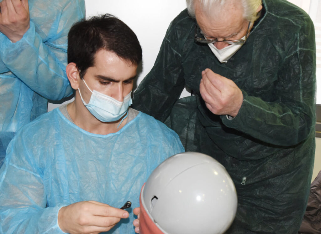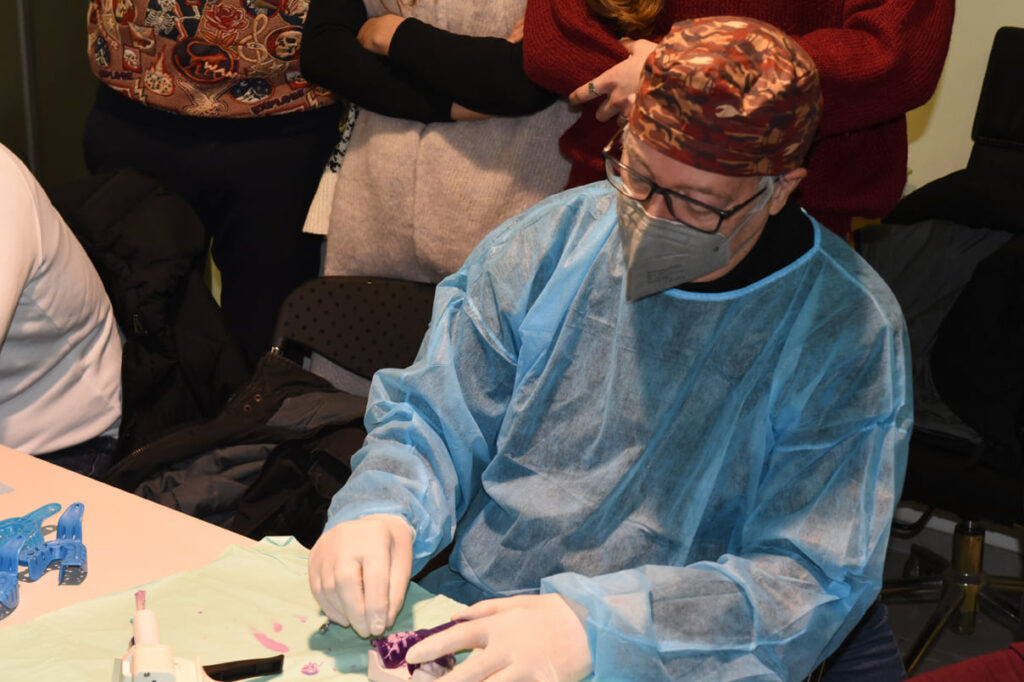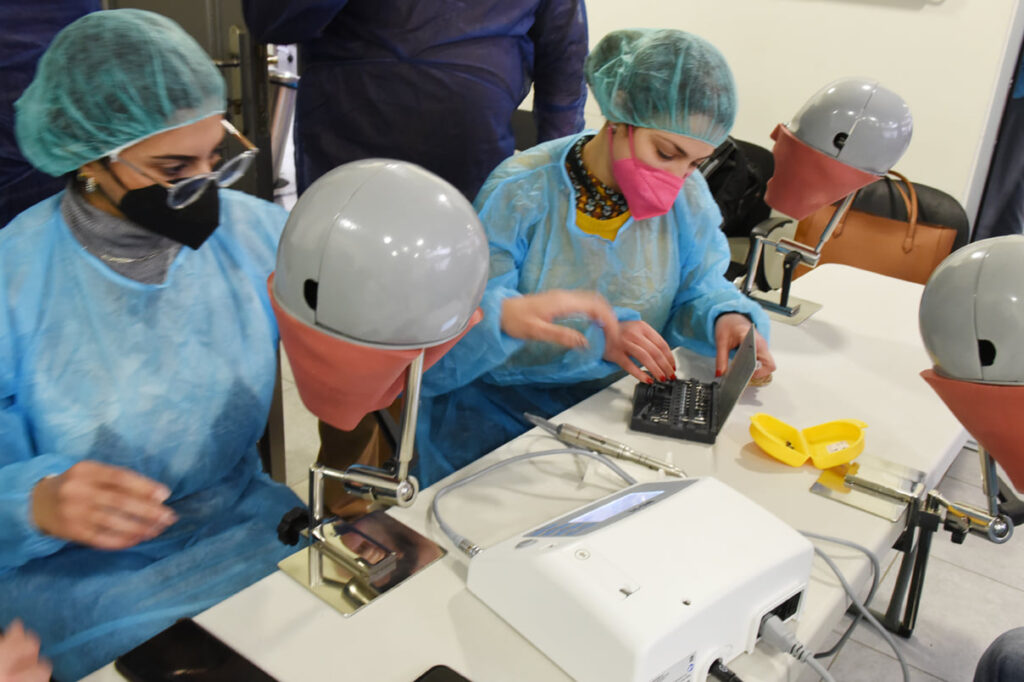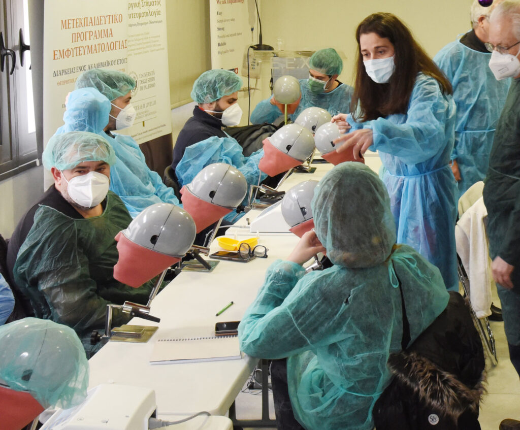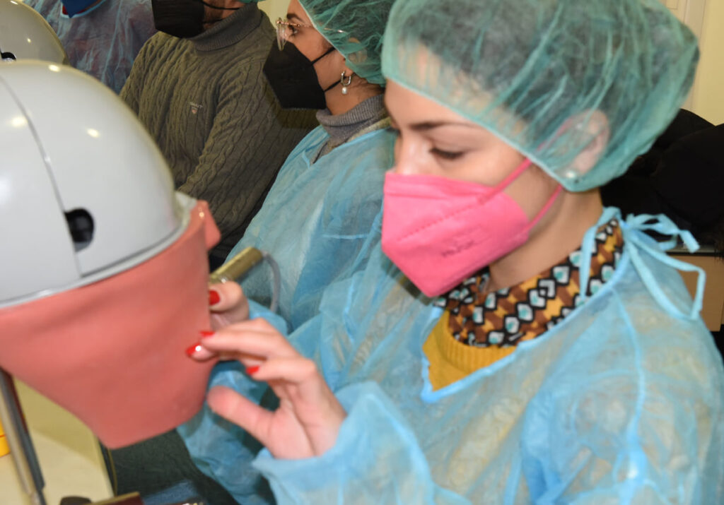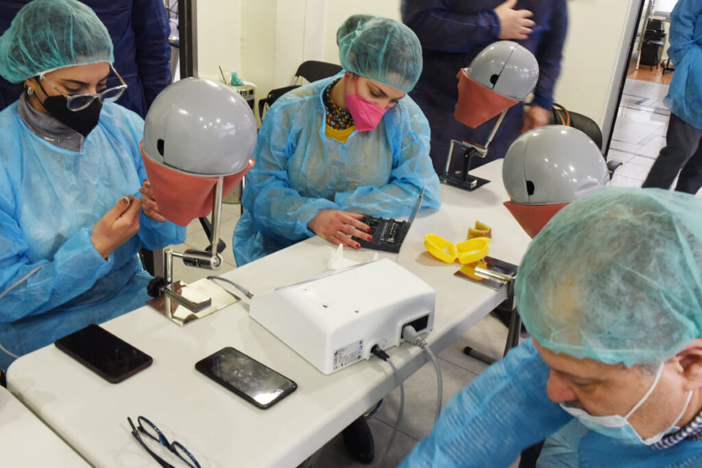 Kαθώς πλησιάζει ο καιρός που οι συμμετέχοντες θα τοποθετήσουν οι ίδιοι εμφυτεύματα σε δικούς τους ασθενείς, εξασκήθηκαν στην τοποθέτηση εμφυτευμάτων σε μοντέλα γνάθων (jaw phantoms). Επιπλέον, είχαν την ευκαιρία να ασκηθούν στη λήψη αποτυπωμάτων και να εκπαιδευτούν στην κατασκευή επιεμφυτευματικών προσθετικών αποκαταστάσεων από τον Αναπληρωτή Καθηγητή Οδοντιατρικής Σχολής ΕΚΠΑ, Προσθετολόγο κ. Καφούσια Νικόλαο. Τέλος, υπό την καθοδήγηση του Χειρουργού Οδοντιάτρου κ. Γιάκη Σωτήριου, οι συμμετέχοντες εκπαιδεύτηκαν στην υπολογιστικά καθοδηγούμενη εμφυτευματολογία και την κατασκευή χειρουργικού νάρθηκα. Η Ε.Ε.Χ.Σ. ευχαριστεί θερμά τους προσκεκλημένους ομιλητές για την πολύτιμη παρουσία τους στο Πρόγραμμα.